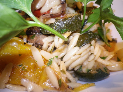 If you are following my last post then you should have seen both the grilled veggies and orzo before and should have some left over (either cooked or raw) in order to make this easy dish.